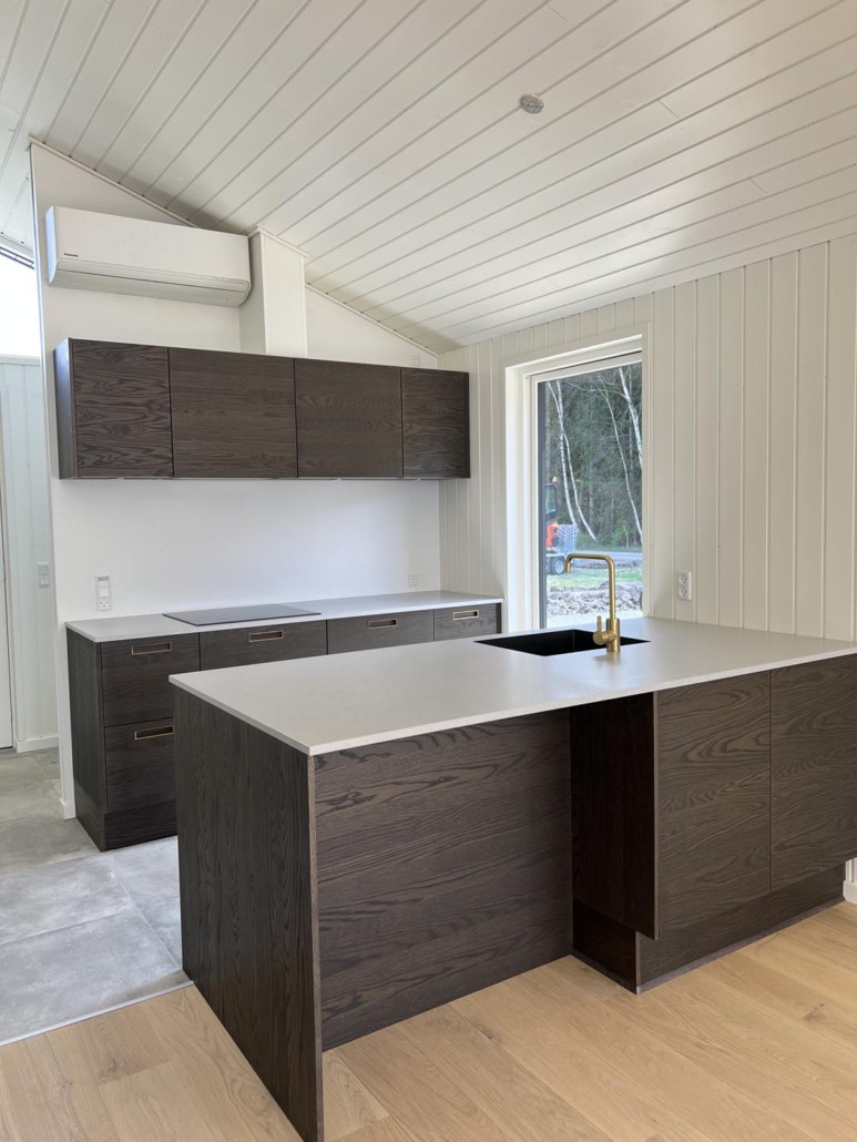Sommerhusene forberedes til el, vand og kloak, og vi samarbejder med autoriserede installatører. Ønskes opvarmning via varmepumpe, elgulvvarme eller brændeovn, indarbejdes dette i projektet fra starten, så funktionalitet og komfort følges ad.